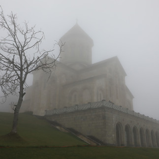 In Sichtweite zur Stadt mieten wir uns im, in Nebel gehüllten, Kloster Bodbe ein. Hier hat, die als heilige verehrte, Nino ihr Grab gefunden.