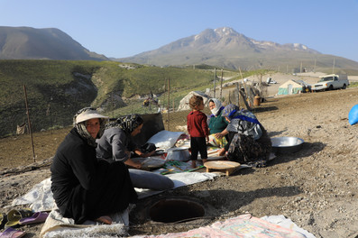 Heutzutage gibt es neben den drei großen Nomadenstämmen Qashqai, Bakhtiari und Shahsavan im Iran, vor allem pakistanische und afghanische Hirten, die das entbehrungsreiche Leben in den Zelten während der Sommermonate über sich ergehen lassen.
